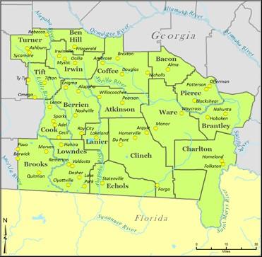 The major surface water resources in the region include the Alapaha, Satilla, St. Marys, Suwannee, and Withlacooche Rivers. The Suwannee-Satilla Region encompasses several major population centers including Douglas, Tifton, Waycross, and Valdosta. The Suwannee-Satilla Regional Water Planning Council meets regularly between plan updates to discuss ongoing implementation of the plan, outreach to interested stakeholders, and hear the latest on water issues affecting the Region. Below is a summary of ongoing activities.